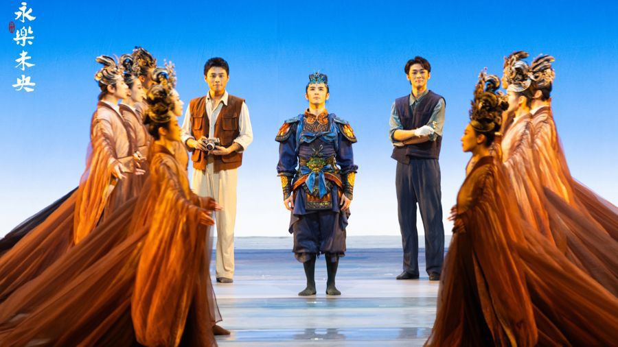 《永乐未央》以匠心为笔,将永乐宫元代壁画的流光溢彩、古建榫卯的机灵交错、琉璃时期的莹澈光华,统共织入舞者的翩跹韵律,让千里睡的文物实在“活”于当下。