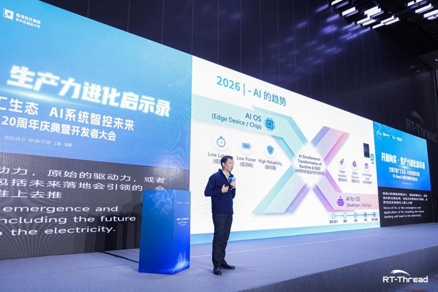 1月17日,“开源向实·出产力进化启示录”民众峰会暨RT-Thread睿赛德二十周年开发者大会在临港新片区举行,诱骗来自芯片、工业、汽车、机器东谈主、动力、通讯等领域千余代表参预。当作国产镶嵌式操作系统“隐形冠军”,睿赛德深耕开源二十载,已构建起隐敝芯片原厂、决策商、末端厂商、民众开发者社区及高校科研机构等全链路生态闭环,累计装机量超25亿台,位居寰宇镶嵌式行业之首,社区开发者规模梗阻30万。