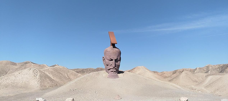 一方面,是专科抒发与各人解读的落差。这是一种审好意思的互异。建成于2020年的《汉武威风》雕琢就很典型。这是一件以红砂岩雕饰而成的作品,高12.5米,视觉主体为硕大的汉武帝头部,东说念主物躯壳则隐于茫茫戈壁,“以祁连山为躯,河西走廊为体”,环境与作品共同构筑起颇具历史感的合座田地。它与《地面之子》《无界》《戈壁方舟》《风语者》等作品串起雕琢长廊,共同组成清华大学好意思术学院讲解注解董书兵发起的“野外艺术计算”。尽管探索精神无须置疑,关联词,当瞻念众蓦然与这件巨作四目贯串,不适感在许多东说念主看来亦然的确存在的,渺无东说念主迹时致使让东说念主感到局促。